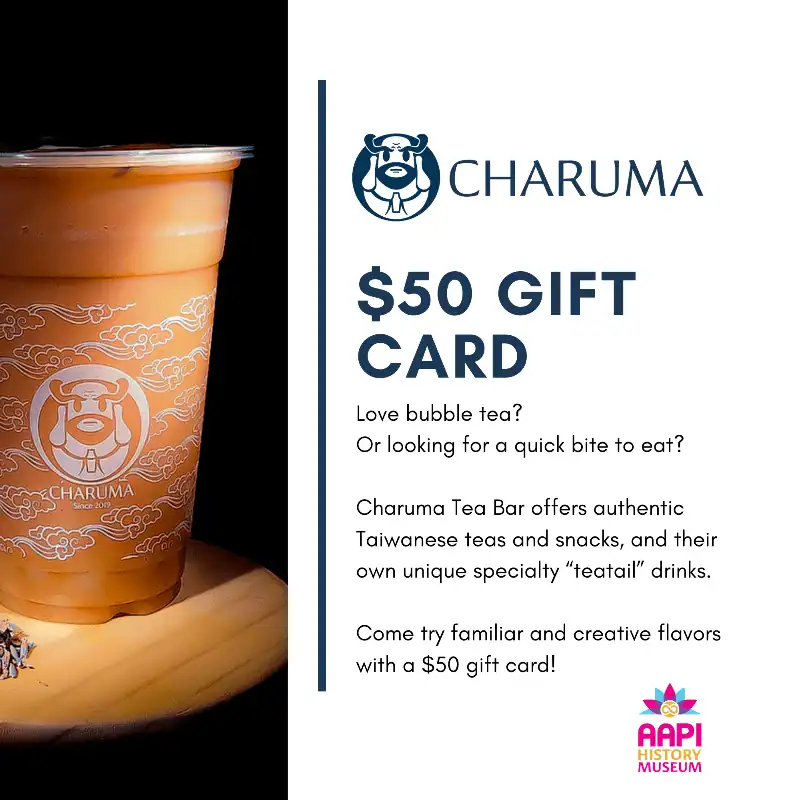 Love bubble tea? Or looking for a quick bite to eat? Charuma Tea Bar offers authentic Taiwanese teas and snacks, and their own unique specialty “teatail” drinks. Come try familiar and creative flavors with a $50 gift card!