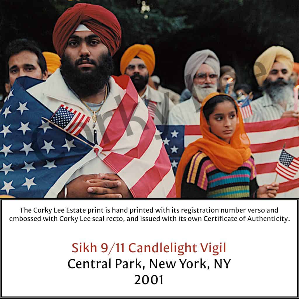 “Sikh 9/11 Candlelight Vigil” is a photograph by Corky Lee, taken in Central Park in 2001 and printed in 2025 as an archival color digital C-print. This authorized estate print includes official registration, an embossed seal, and a certificate of authenticity. Lee, a pioneering photographer, spent over 50 years documenting the resilience and everyday lives of Asian American communities, leaving a lasting legacy as both an artist and visual historian.